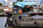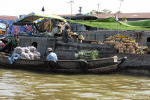 Kolejny dzień wycieczki rozpoczynamy od wizyty na pływającym targu Cai Rang. Nie byliśmy tam wcześnie rano, to pewnie tłumaczy dlaczego nie było tam zbytnio wielkiego ruchu. Właściwie to wyobrażałem to sobie inaczej, że będzie tam pełno małych łódek, wzdłuż których będziemy przepływali, a właściwie to w większości to były większe statki, więc była to raczej hurtownia, w której zaopatrują się mniejsi sprzedawcy :) Każdy taki statek miał na długim palu wywieszony towar, który sprzedaje.